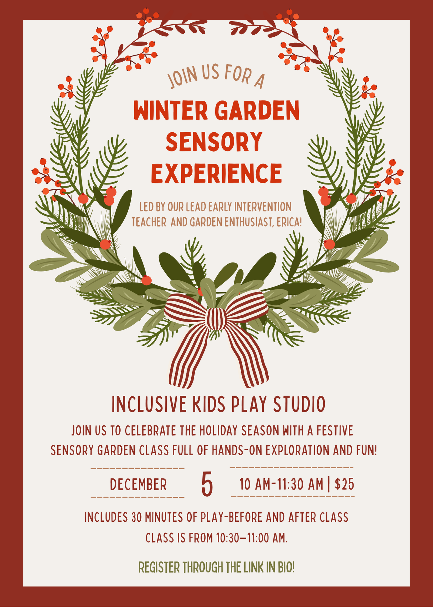 Join Us to Celebrate the Holiday Season with a festive sensory garden class full of hands-on exploration and fun!🎄