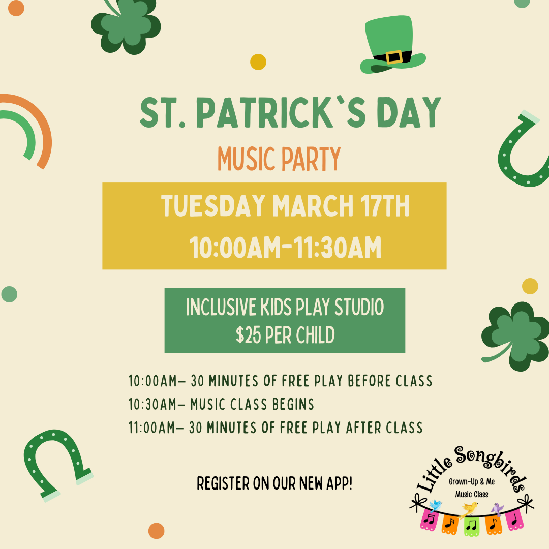 Join Miss Erica for a fun St. Patrick’s Day themed music class!